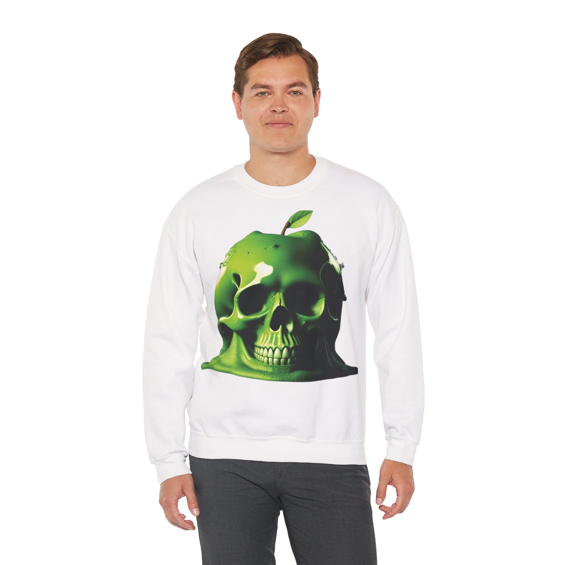 Acest sweatshirt crewneck îmbină confortul cu un design îndrăzneț, de inspirație botanică-întunecată — un măr verde lucios care se transformă subtil într-un craniu, imprimat pe un fundal alb curat. Are o croială clasică, ușor lejeră, care se poate purta cu ușurință peste tricouri sau sub jachete. Poartă-l atunci când vrei să transformi o plimbare prin oraș într-un moment puțin ciudat sau când ieșirile târzii la diner cer ceva în același timp moale și izbitor. Designul se citește ca o mică poveste pe pieptul tău: luminos, ușor sinistru și discret jucăuș. Cusăturile rezistente și gulerul rib stabilizator păstrează forma după multiple spălări, iar eticheta detașabilă și bumbacul obținut responsabil îl fac o alegere ușoară pentru purtarea zilnică.