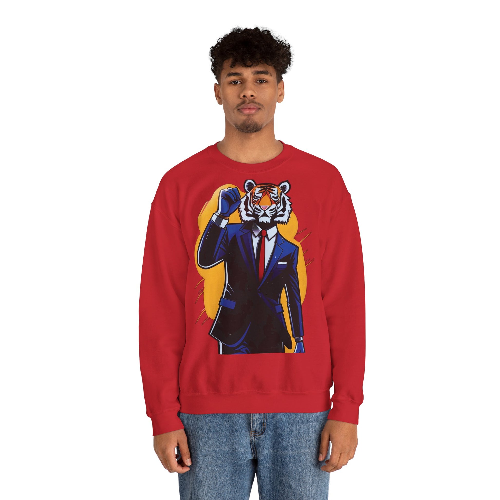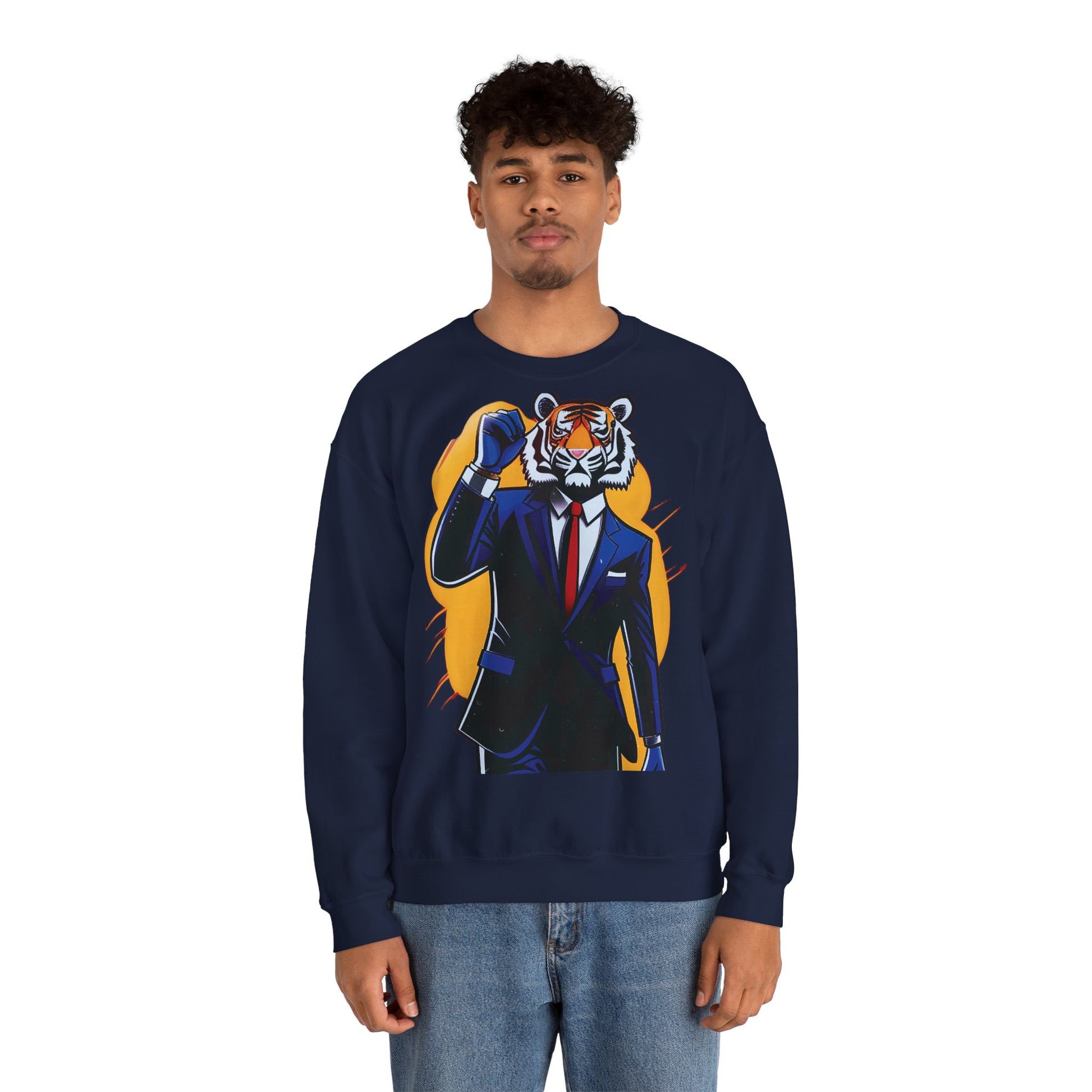 Acest sweatshirt crewneck de greutate medie aduce o încredere discretă în ținutele de zi cu zi. Un tigru ilustrat, purtând costum, stă în centrul atenției — liniile îndrăznețe și fundalul auriu cald conferă graficii un aspect vintage combinat cu street-style. Silueta clasică și gulerul ribbed oferă un sentiment familiar și confortabil, în timp ce cusăturile duble și construcția tubulară își păstrează forma după purtări repetate. Poartă-l la ieșiri pentru cafea în weekend, sesiuni târzii de studiu sau plimbări prin oraș, atunci când vrei să arăți aranjat fără efort excesiv. Detaliile etichetelor brodate și imprimate păstrează interiorul neted și fără iritații. Bumbacul obținut etic și coloranții certificați OEKO-TEX înseamnă că alegi o piesă realizată cu atenție la materiale și standarde.