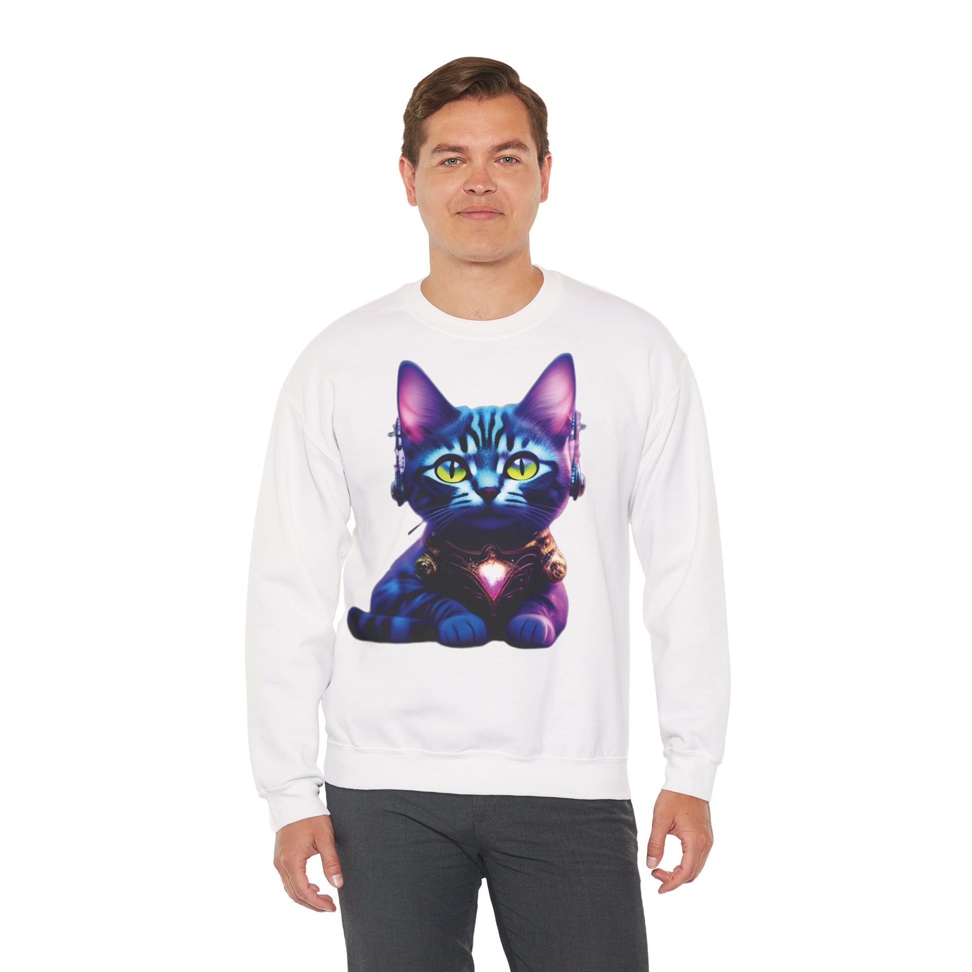 Moale, călduros și puțin magic — acest sweatshirt crewneck confortabil aduce un farmec de pisică neon în serile liniștite și aventurile de zi cu zi. Printul înfățișează o pisică tigrată luminoasă, cu ochi verzi strălucitori și un mic pandantiv în formă de inimă, redată în nuanțe profunde de albastru și mov care ies în evidență pe fundalul alb curat. Poartă-l suprapus peste un tricou pentru dimineți relaxate sau îmbracă-l după apus pentru plimbări, seri de gaming sau momente petrecute cu o carte. Atmosfera este jucăușă, dar echilibrată: artă plină de culoare care se simte ca o mascotă secretă pentru cei care iubesc culorile, pisicile și spațiile luminate ambiental.