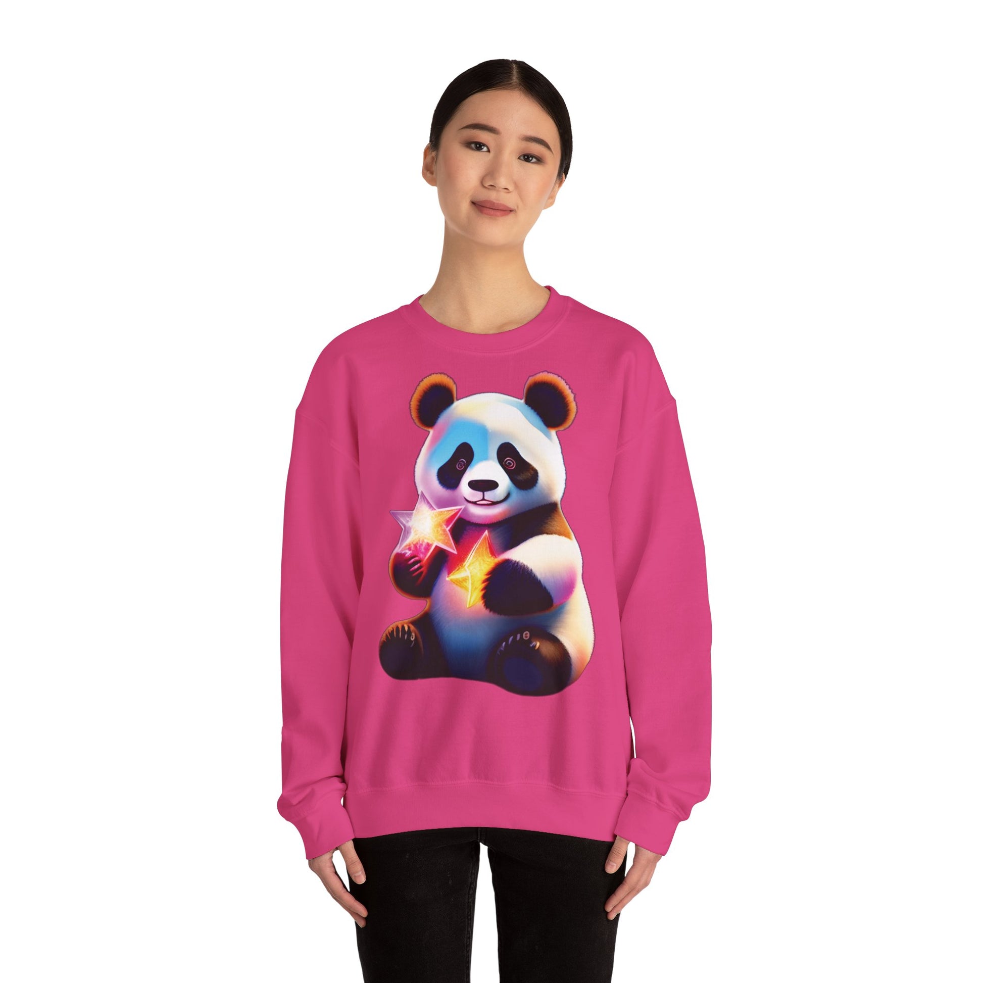 Confort moale și plăcut, cu un strop de magie. Acest sweatshirt cu guler rotund te învăluie în căldură, în timp ce un panda visător, irizat, ținând stele neon, devine punctul central — jucăuș și subtil îndrăzneț. Croiala clasică și gulerul rotund se așază curat și relaxat pe umeri. Cusăturile duble și eticheta detașabilă asigură purtare confortabilă și durabilă. Este genul de sweatshirt pe care îl alegi în dimineți lente, la plimbări nocturne sau când vrei un strop de lumină jucăușă într-o zi mai liniștită. Layout-ul prietenos pentru broderie și printul DTG vibrant fac ca designul să iasă în evidență fără a pierde senzația moale și purtată a piesei.