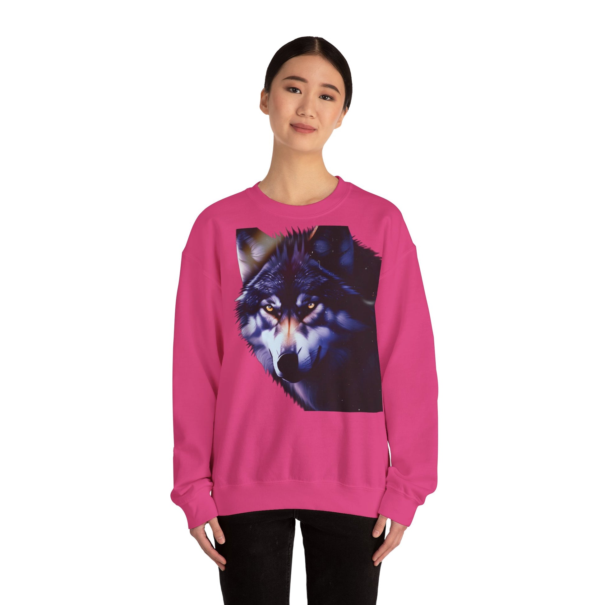 Un crewneck moale, cu greutate constantă, care poartă o sălbăticie nocturnă pe piept. Ilustrația surprinde un lup luminat de lună — cu ochii strălucind ca niște stele îndepărtate — imprimat pe un fundal alb curat. Poartă-l în serile răcoroase plimbându-te pe străzile orașului sau în straturi, pentru o noapte liniștită la cabană. Croiala respectă proporțiile clasice, cu guler și manșete ribbed care își păstrează forma la purtare repetată. Realizat cu atenție dintr-un amestec de bumbac și poliester, cu cusături ranforsate, oferă un echilibru între căldură și respirabilitate, astfel încât imaginea să rămână în prim-plan fără a compromite confortul.